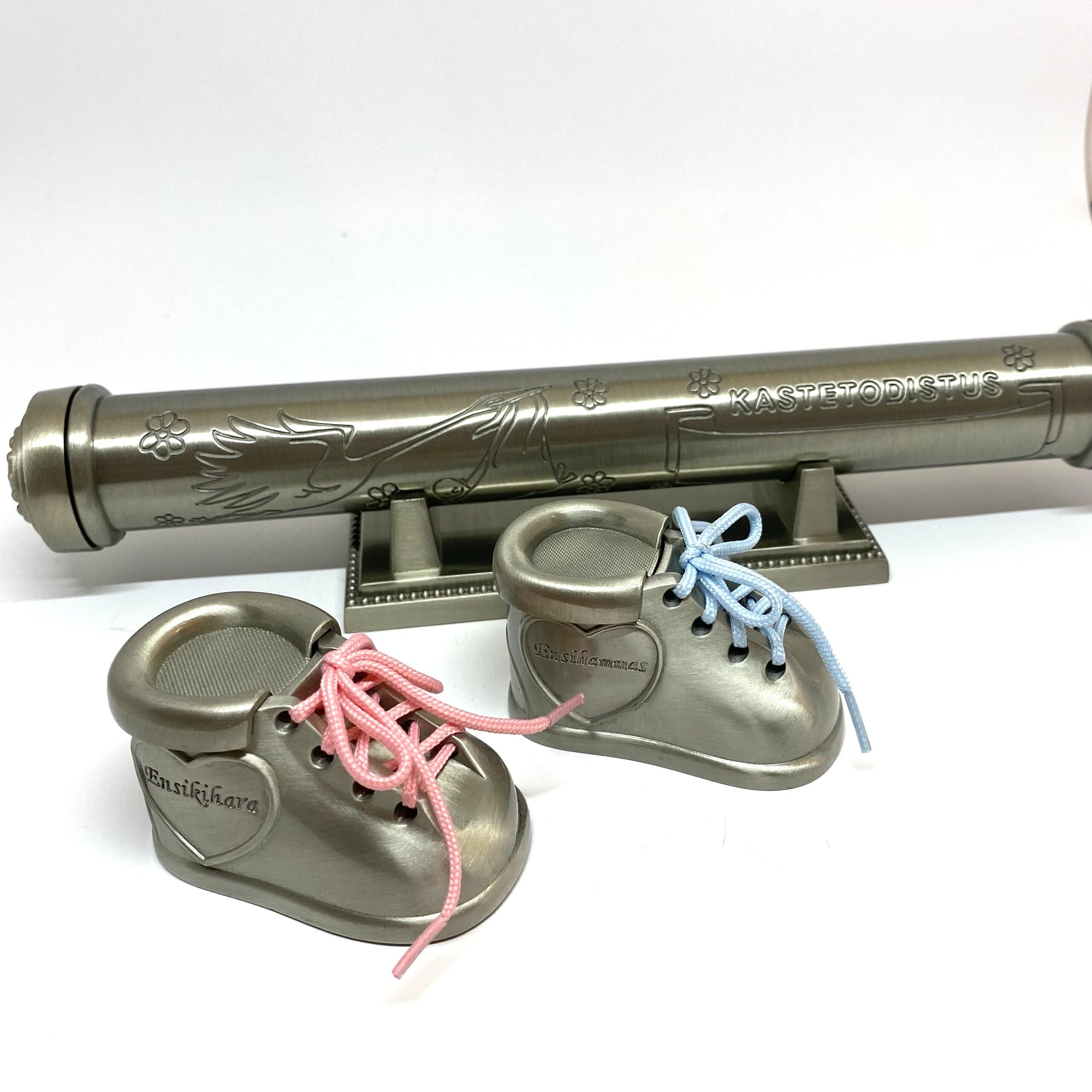 Kastetodistus jalustalla, ensihammas ja ensikihara rasiat